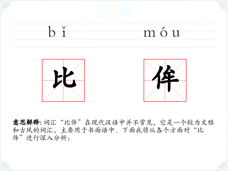 词汇“比侔”在现代汉语中并不常见,它是一个较为文雅和古风的词汇,主要用于书面语中。下面我将从各个方面对“比侔”进行深入分析:
