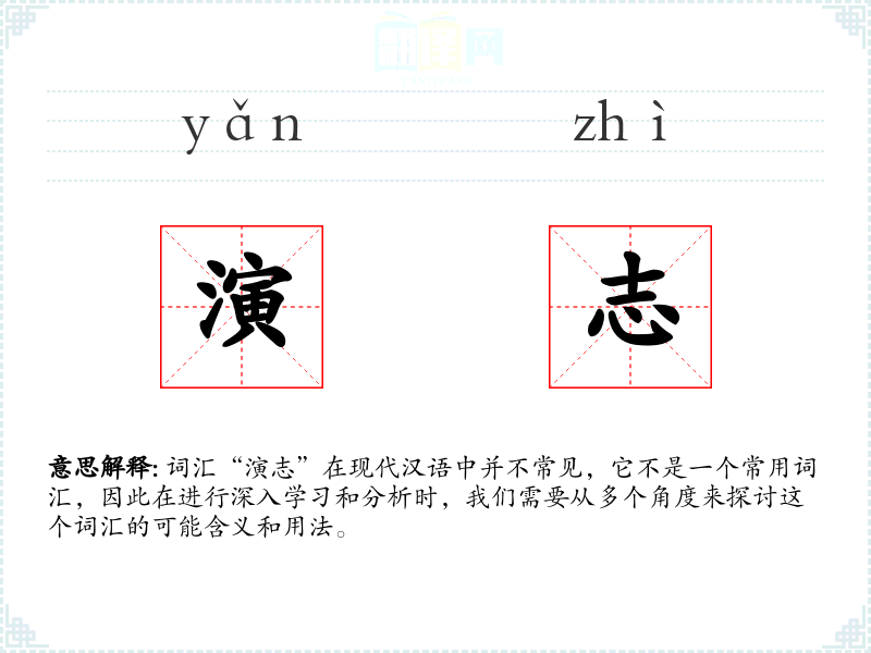 词汇“演志”在现代汉语中并不常见,它不是一个常用词汇,因此在进行深入学习和分析时,我们需要从多个角度来探讨这个词汇的可能含义和用法。