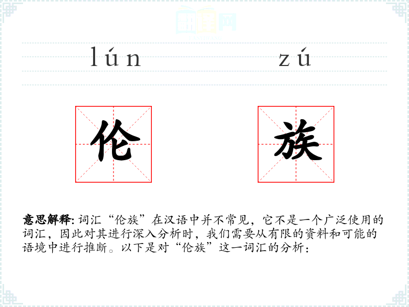 - 反义词:无(由于“伦族”不是一个常用词汇,反义词难以确定)