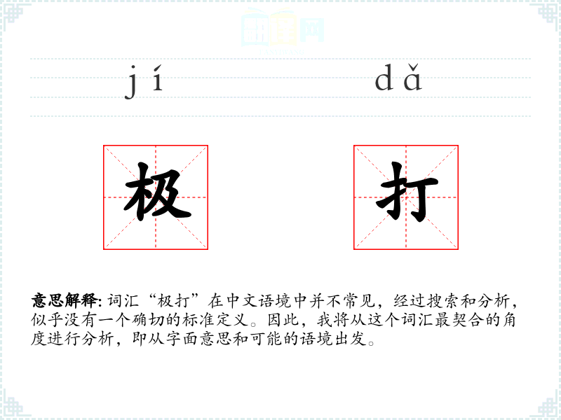 词汇“极打”在中文语境中并不常见,经过搜索和分析,似乎没有一个确切的标准定义。因此,我将从这个词汇最契合的角度进行分析,即从字面意思和可能的语境出发。