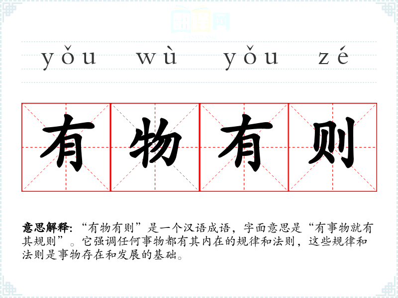 “有物有则”是一个汉语成语,字面意思是“有事物就有其规则”。它强调任何事物都有其内在的规律和法则,这些规律和法则是事物存在和发展的基础。