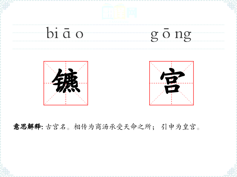 古宫名。相传为商汤承受天命之所; 引申为皇宫。