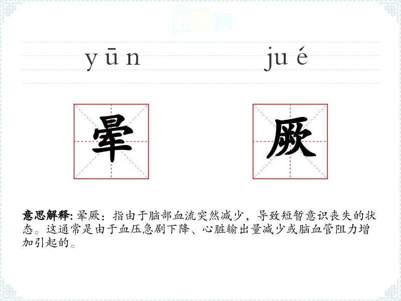 晕厥一词源自古代汉语,字面意思是“晕”和“厥”的结合,分别表示“头晕”和“失去知觉”。随着时间的推移,这个词在医学领域得到了更精确的定义和使用。
