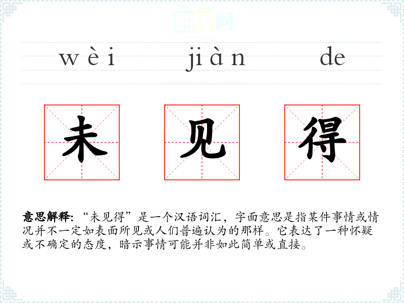 “未见得”源自汉语的日常表达,随着语言的发展,它被广泛应用于各种语境中,成为表达不确定性和怀疑的常用词汇。