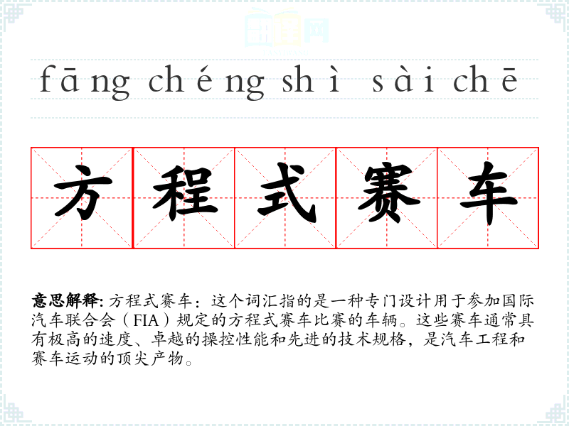 "方程式赛车"的意思解释、方程式赛车是什么意思由翻译网汉语词典查词提供。
