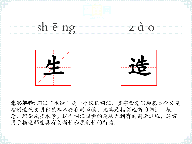 总结来说,“生造”是一个富有创造性和前瞻性的词汇,它在语言学习和表达中具有重要意义,能够激发人们的创新思维和探索精神。