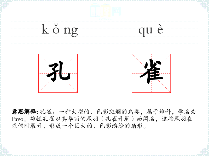 孔雀的分字解释