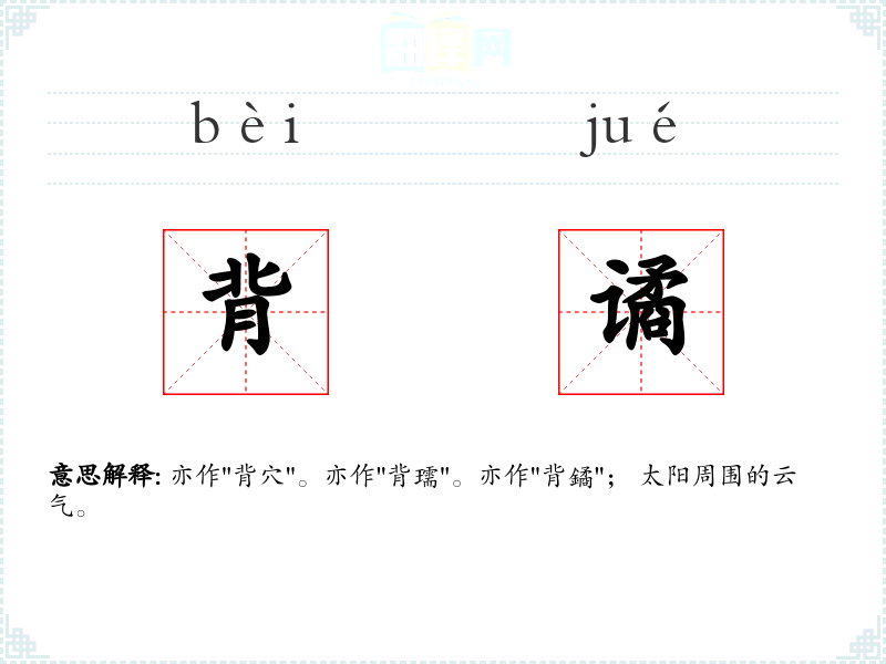 亦作"背穴"。亦作"背瓀"。亦作"背鐍"; 太阳周围的云气。
