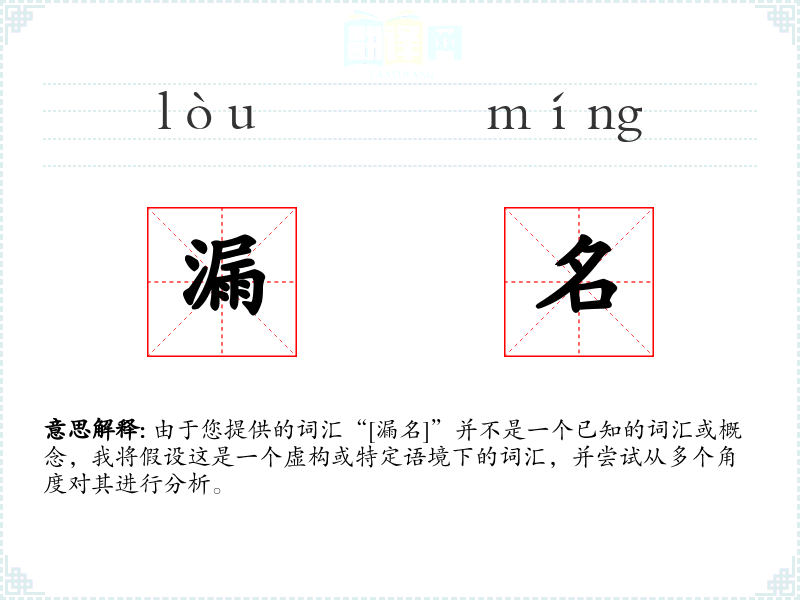 - 专业领域:在法律或行政文件中,可能会用“[漏名]”来指代某个在文件中未被正确记录的人名。