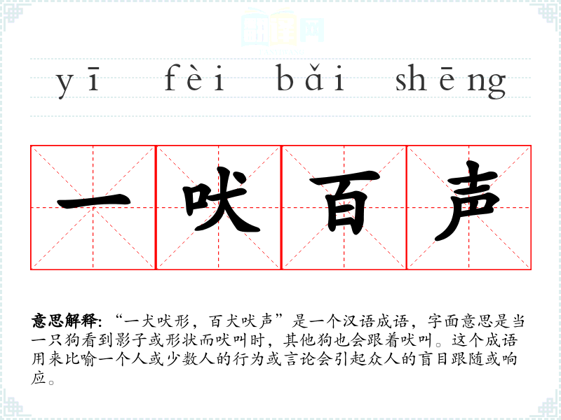 - yī quǎn fèi yǐng,bǎi quǎn fèi shēng一犬吠影,百犬吠声
