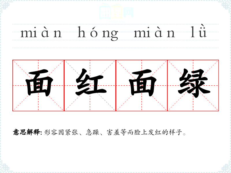 形容因紧张、急躁、害羞等而脸上发红的样子。