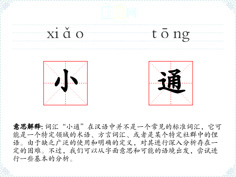 由于“小通”不是一个广泛使用的词汇,它在不同语言或文化中的对应词汇可能不存在,或者意义完全不同。