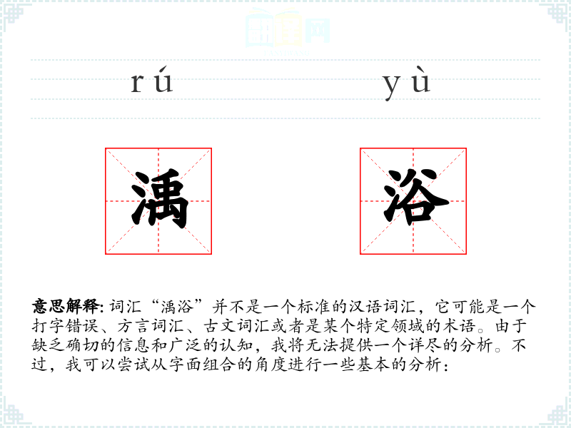 请注意,以上分析基于假设和猜测,如果“渪浴”确实是一个特定领域的术语或方言词汇,那么需要更专业的知识和背景信息来进行准确的分析。