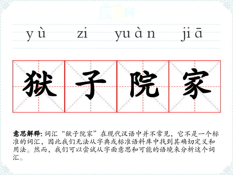 “狱子院家”不是一个标准词汇,它的使用和理解可能非常有限。在语言学习和表达中,我们应当关注标准和常用的词汇,以确保沟通的有效性和准确性。