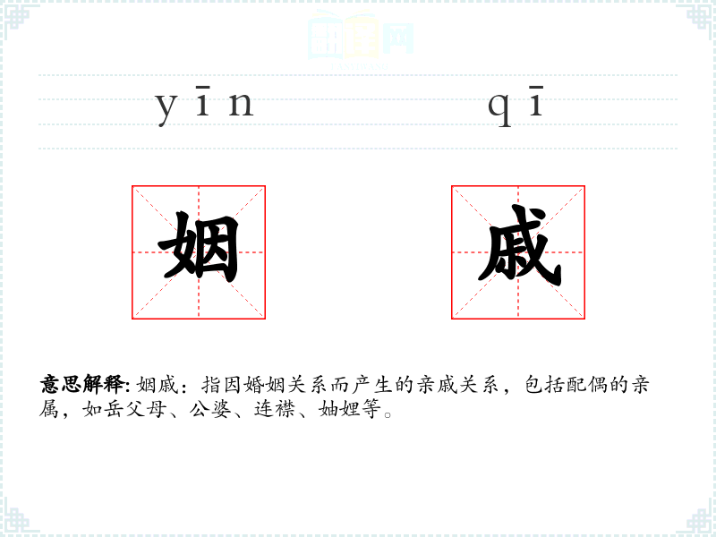 想象一个大家庭的聚会,人们围坐在一起,笑声和谈话声交织,这就是“姻戚”带来的视觉和听觉联想。