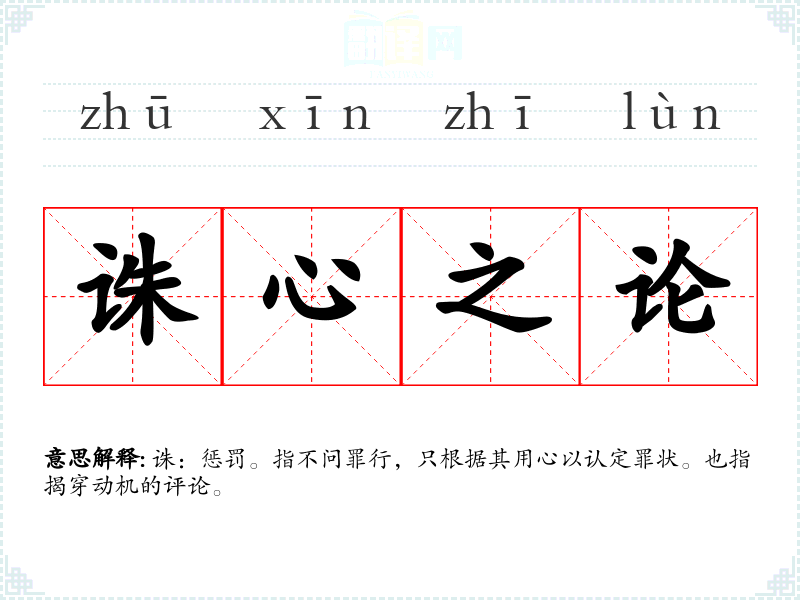 诛:惩罚。指不问罪行,只根据其用心以认定罪状。也指揭穿动机的评论。