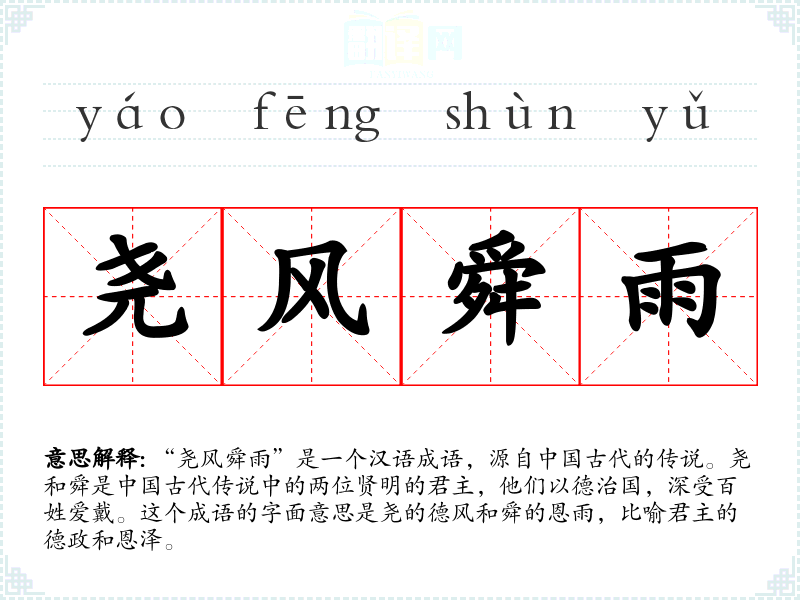 “尧风舜雨”这个成语源自**古代的历史传说,尧和舜被认为是理想的君主形象。随着时间的推移,这个成语被用来比喻任何有德行的领导者的治理方式。