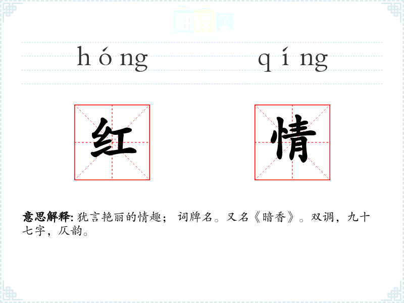 犹言艳丽的情趣; 词牌名。又名《暗香》。双调,九十七字,仄韵。