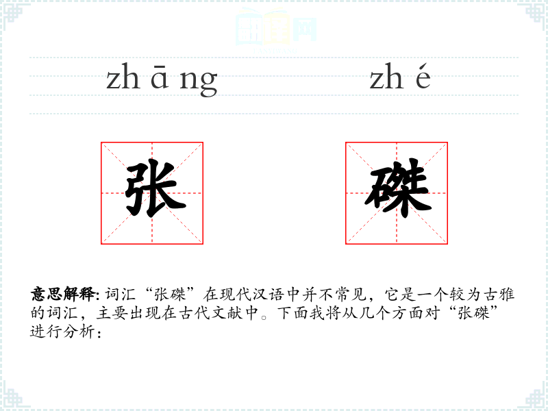 词汇“张磔”在现代汉语中并不常见,它是一个较为古雅的词汇,主要出现在古代文献中。下面我将从几个方面对“张磔”进行分析: