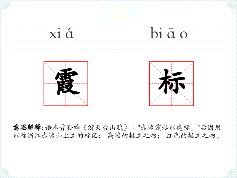霞标的分字解释