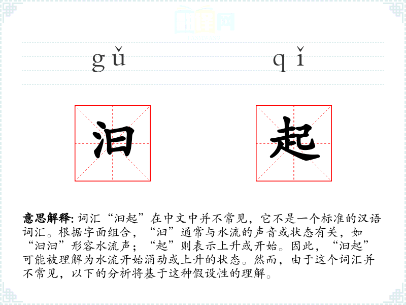 “汩起”可能被解释为水流开始涌动或上升的动作或状态。