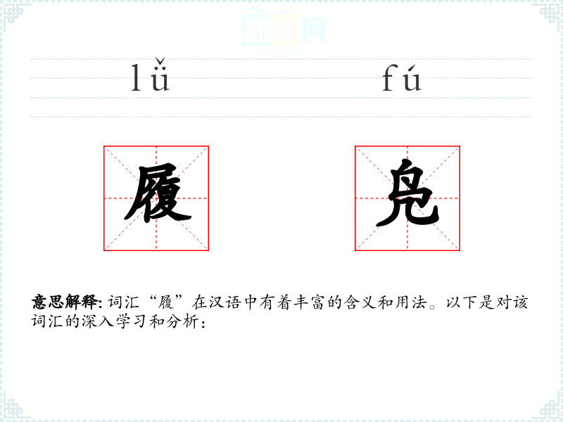 词汇“履”在汉语中有着丰富的含义和用法。以下是对该词汇的深入学*和分析: