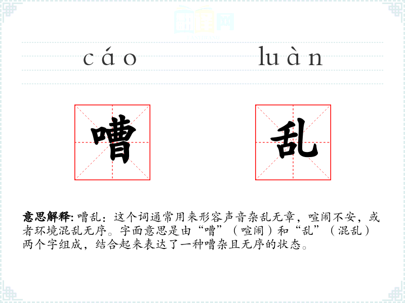 "嘈乱"的意思解释、嘈乱是什么意思由翻译网汉语词典查词提供。