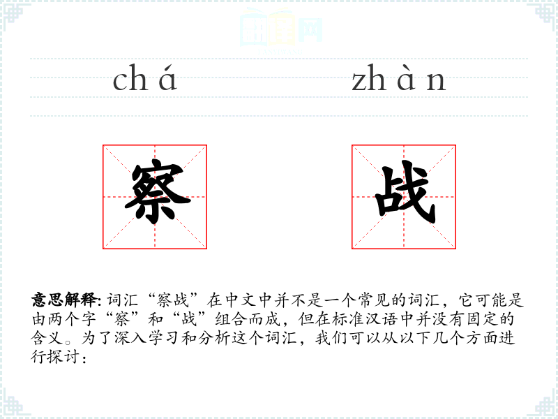 由于“察战”不是一个标准词汇,我们可以尝试从字面意思来解释: