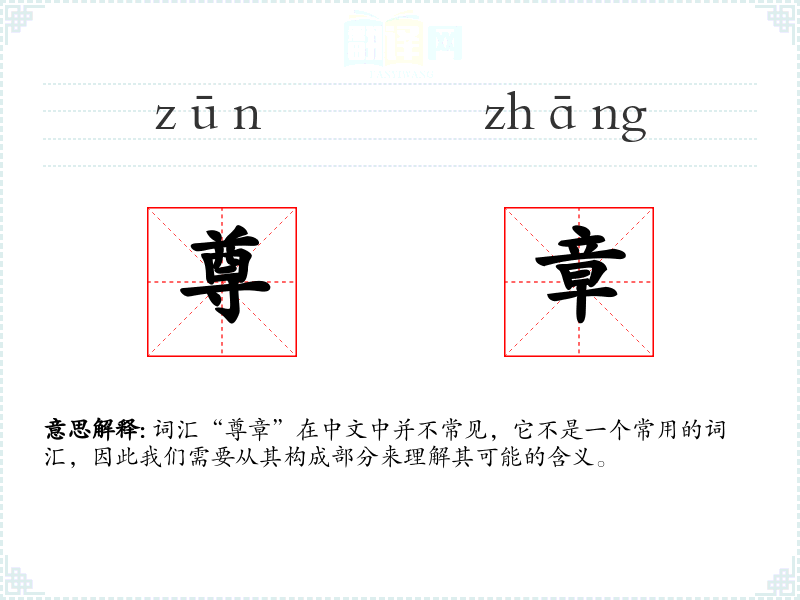 词汇“尊章”在中文中并不常见,它不是一个常用的词汇,因此我们需要从其构成部分来理解其可能的含义。