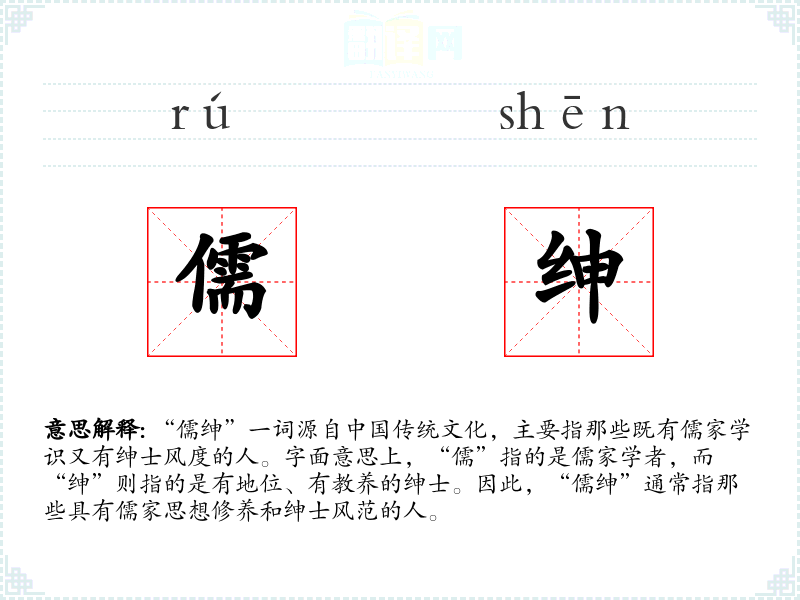 - 同义词:士绅、儒者、文人