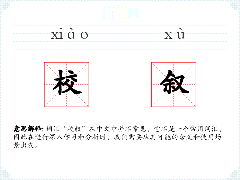词汇“校叙”在中文中并不常见,它不是一个常用词汇,因此在进行深入学习和分析时,我们需要从其可能的含义和使用场景出发。