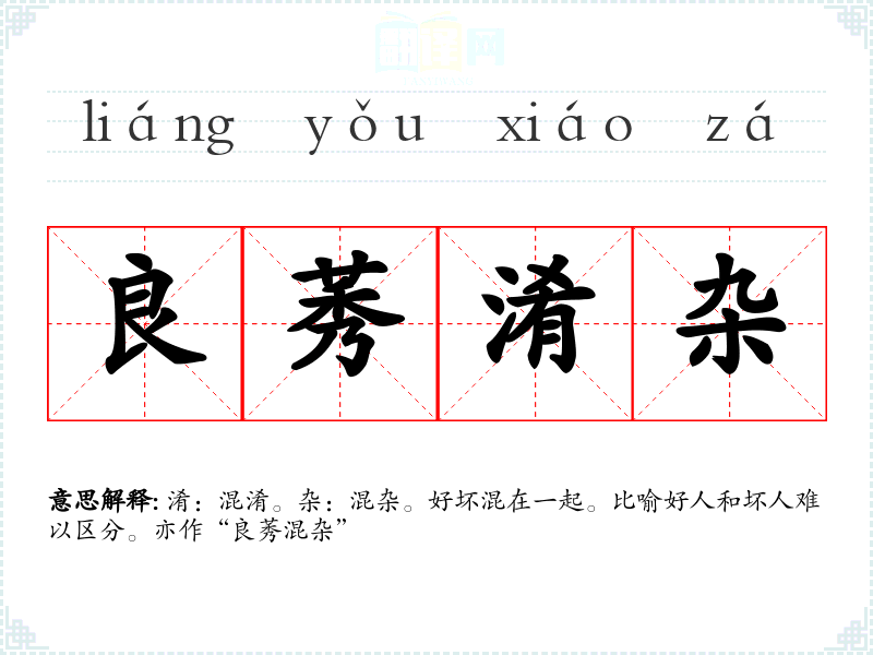 淆:混淆。杂:混杂。好坏混在一起。比喻好人和坏人难以区分。亦作“