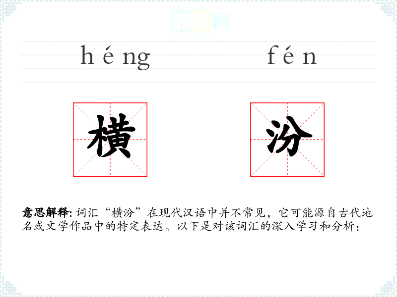 词汇“横汾”在现代汉语中并不常见,它可能源自古代地名或文学作品中的特定表达。以下是对该词汇的深入学*和分析: