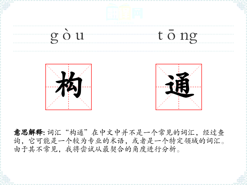词汇“构通”在中文中并不是一个常见的词汇,经过查询,它可能是一个较为专业的术语,或者是一个特定领域的词汇。由于其不常见,我将尝试从最契合的角度进行分析。