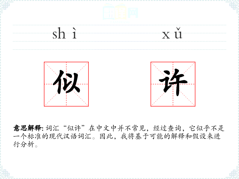 词汇“似许”在中文中并不常见,经过查询,它似乎不是一个标准的现代汉语词汇。因此,我将基于可能的解释和假设来进行分析。