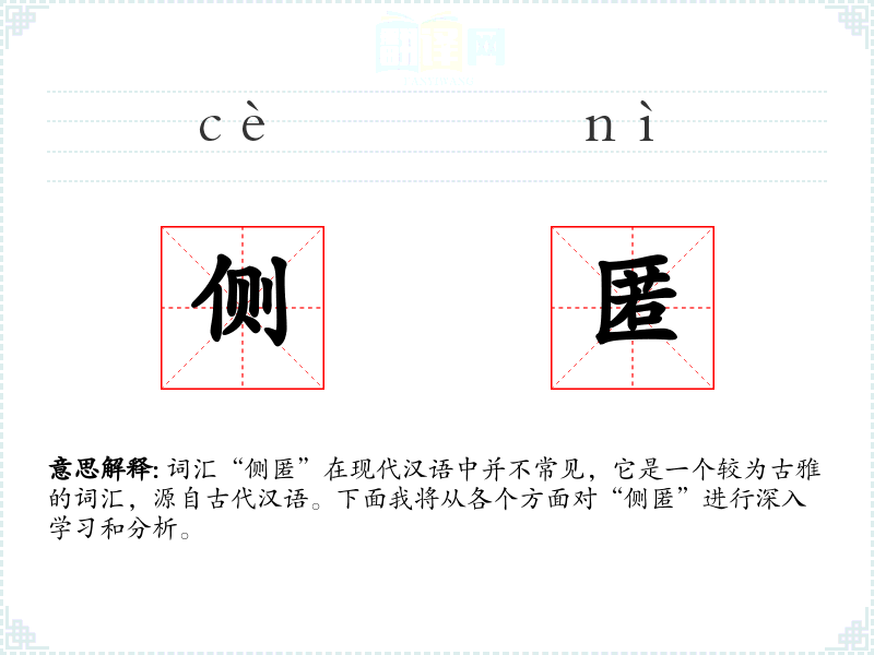 词汇“侧匿”在现代汉语中并不常见,它是一个较为古雅的词汇,源自古代汉语。下面我将从各个方面对“侧匿”进行深入学习和分析。