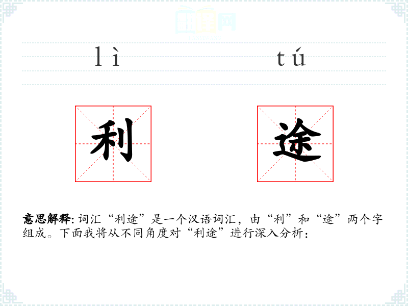 “利途”字面意思是指通往利益或好处的途径。基本含义是指能够带来利益、好处或成功的路径或方法。