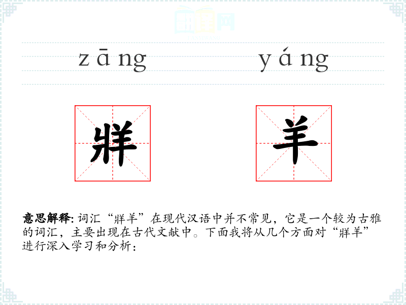 词汇“牂羊”在现代汉语中并不常见,它是一个较为古雅的词汇,主要出现在古代文献中。下面我将从几个方面对“牂羊”进行深入学习和分析: