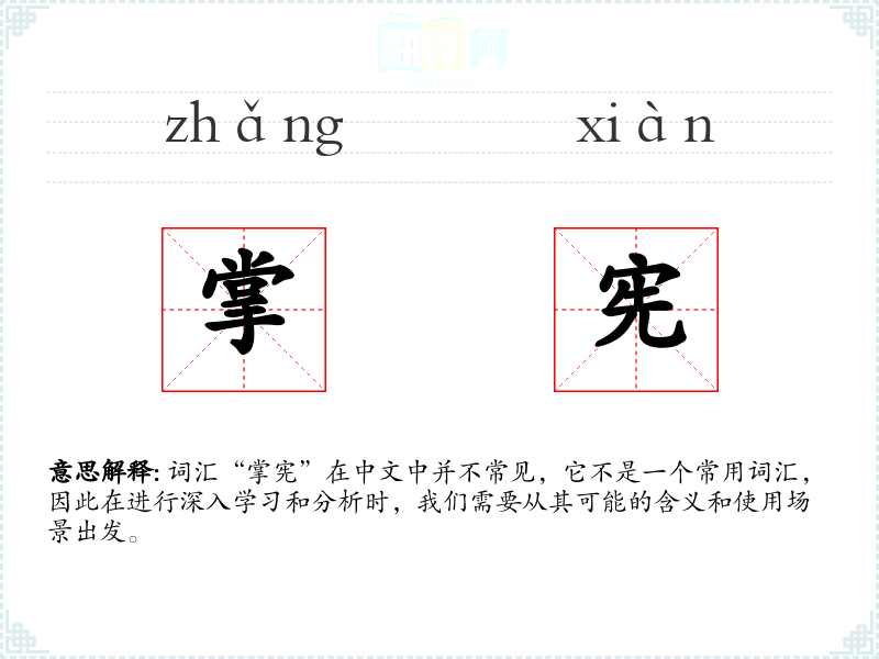 词汇“掌宪”在中文中并不常见,它不是一个常用词汇,因此在进行深入学*和分析时,我们需要从其可能的含义和使用场景出发。