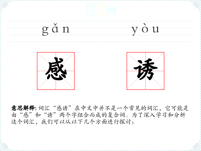 词汇“感诱”在中文中并不是一个常见的词汇,它可能是由“感”和“诱”两个字组合而成的复合词。为了深入学习和分析这个词汇,我们可以从以下几个方面进行探讨: