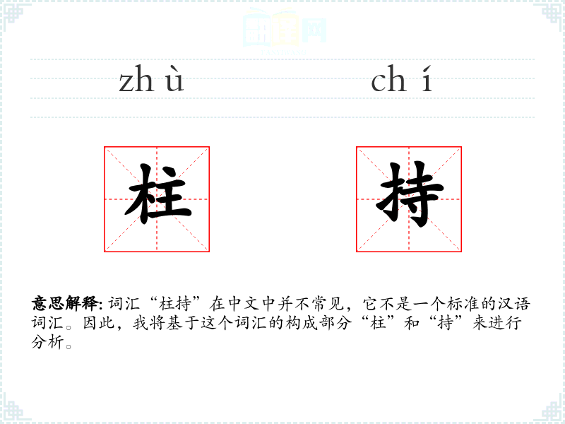 词汇“柱持”在中文中并不常见,它不是一个标准的汉语词汇。因此,我将基于这个词汇的构成部分“柱”和“持”来进行分析。