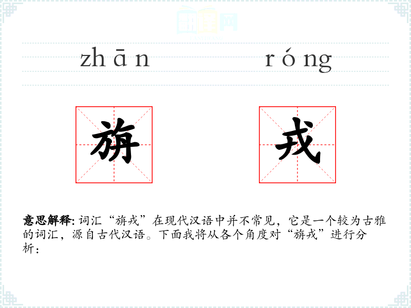 “旃戎”一词在古代汉语中指的是“军旗”或“战旗”,特指军队中的旗帜。在古代战争中,旗帜不仅是指挥军队的标志,也是军队士气的象征。