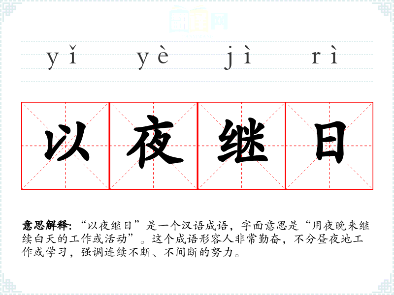 - 文学语境:在文学作品中,这个成语常用来形容主人公的勤奋和不懈努力,如“他以夜继日地研究,终于完成了这部伟大的著作。”