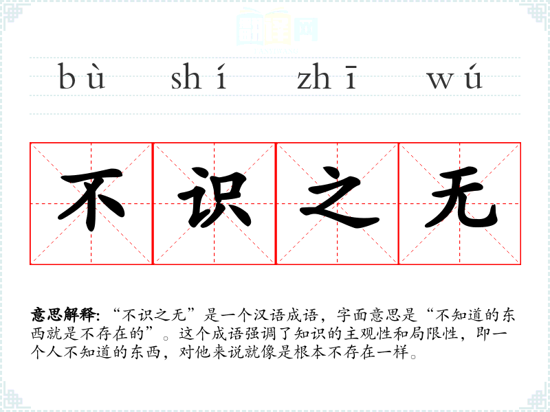 “不识之无”是一个汉语成语,字面意思是“不知道的东西就是不存在的”。这个成语强调了知识的主观性和局限性,即一个人不知道的东西,对他来说就像是根本不存在一样。