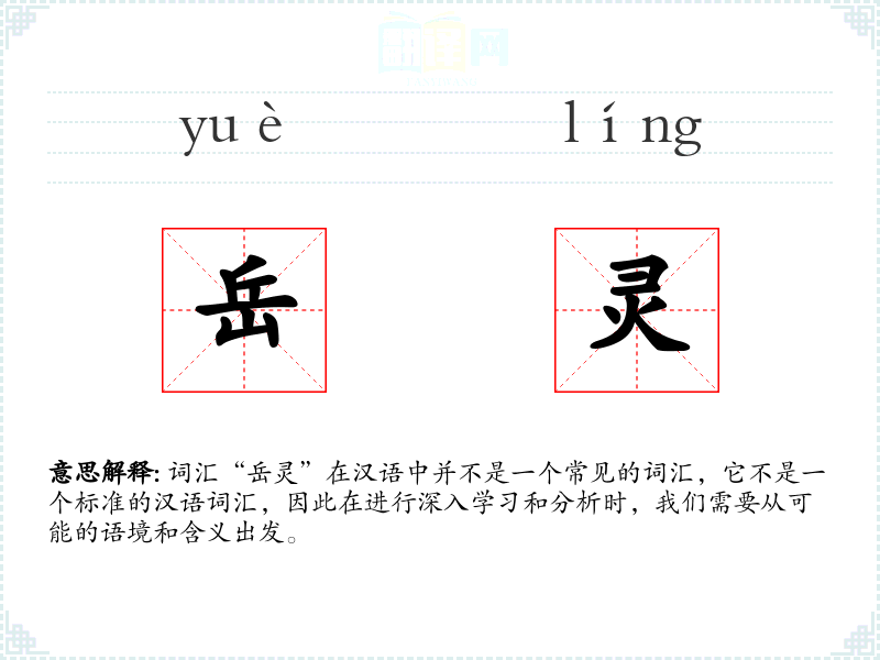 词汇“岳灵”在汉语中并不是一个常见的词汇,它不是一个标准的汉语词汇,因此在进行深入学*和分析时,我们需要从可能的语境和含义出发。