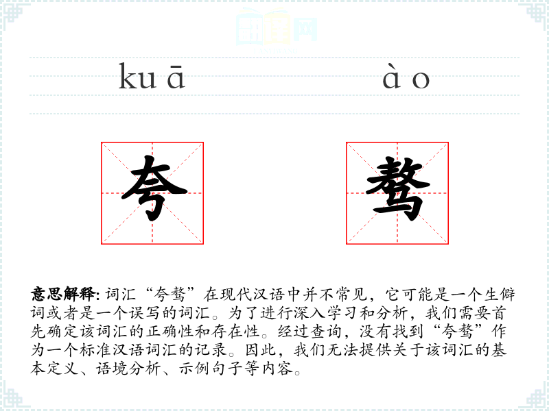 然而,如果我们假设“夸骜”是一个误写的词汇,我们可以尝试从字面组合上进行分析: