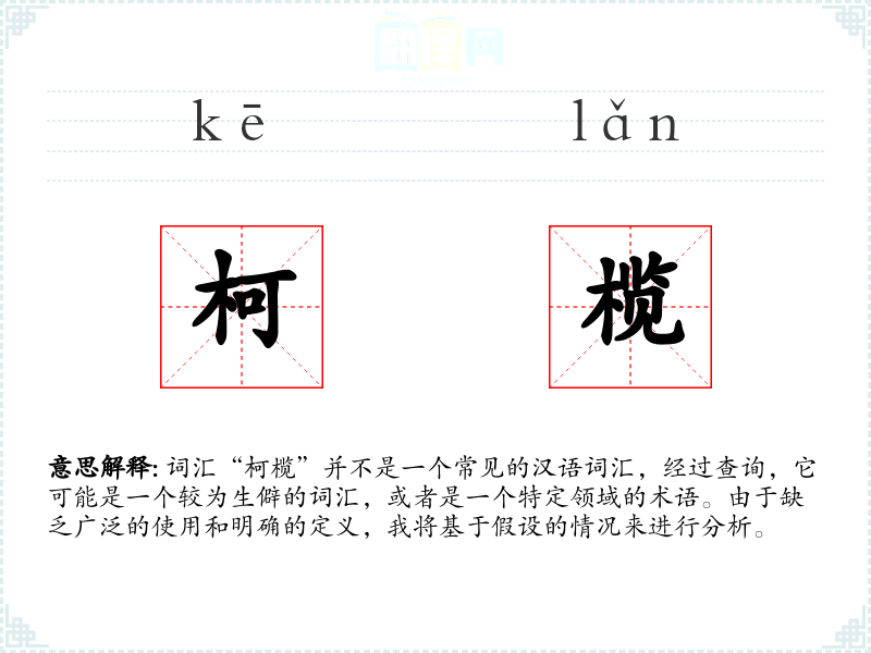词汇“柯榄”并不是一个常见的汉语词汇,经过查询,它可能是一个较为生僻的词汇,或者是一个特定领域的术语。由于缺乏广泛的使用和明确的定义,我将基于假设的情况来进行分析。