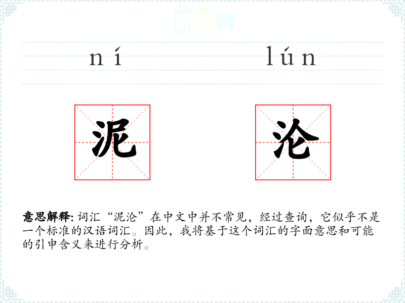 词汇“泥沦”在中文中并不常见,经过查询,它似乎不是一个标准的汉语词汇。因此,我将基于这个词汇的字面意思和可能的引申含义来进行分析。