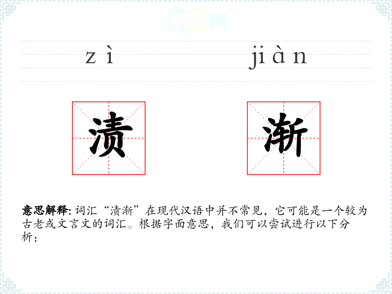 词汇“渍渐”在现代汉语中并不常见,它可能是一个较为古老或文言文的词汇。根据字面意思,我们可以尝试进行以下分析: