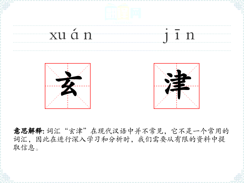 词汇“玄津”在现代汉语中并不常见,它不是一个常用的词汇,因此在进行深入学*和分析时,我们需要从有限的资料中提取信息。